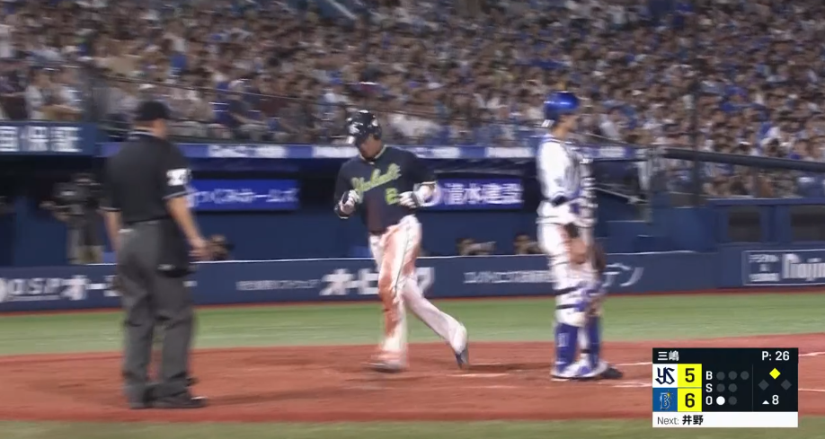 三嶋が宮本にタイムリーを打たれ同点に追いつかれる