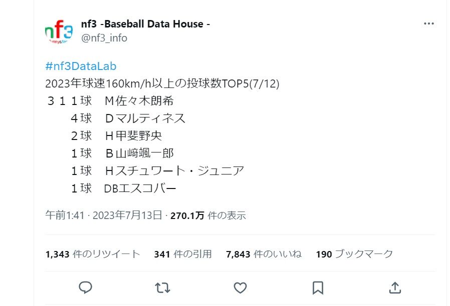 160キロ投手の中でも大谷は荒れるけど制球いいなあって思ってたんだが、朗希はちょっとおかしいくらい制球いいよな