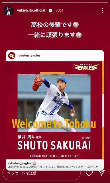 楽天は8日に行われた現役ドラフトで、DeNAから桜井周斗投手(24)を獲得した。今江敏晃監督(40)は「とにかくうちの投手は左が手薄。非常に球も強いですし、まだまだ発展途上の選手なので、チームが変わっていいサイクルに入ってくれれば貢献してくれるんじゃないかな」と期待した。