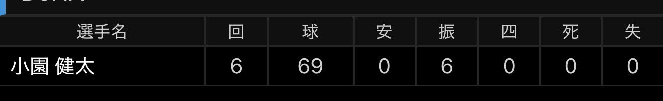 ここまでチェンジアップで空振りを奪いまくり楽天二軍を相手に少ない球数で完全試合を継続。