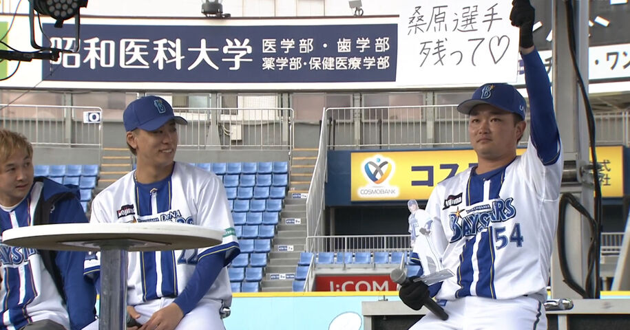 この日は横浜スタジアムで「横浜DeNAベイスターズ BAY BLUE FESTIVAL ~ BAYSTARS FUN! DAYS ~ Supported by ありあけハーバー」が開催中で、3人はベイスターズファンによる、ベイスターズファンのためのプレゼン大会の「仲間を増やせ!ベイスターズの来年の楽しみ方を考える会」に出演。3番目のパネリストとして登板した吉川が「みなさまご静聴ありがとうございました」と話すと同時に「桑原選手残って♡」と書かれたパネルを掲げて残留を願った。