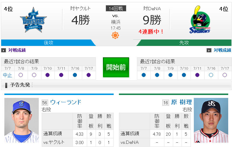 【試合実況】[2018/7/16] DeNAベイスターズvsヤクルトスワローズ 18:00~