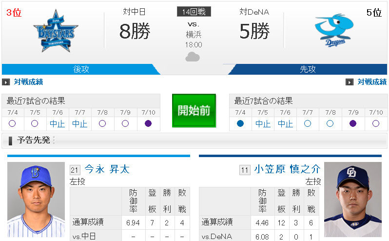 【試合実況】[2018/7/11] DeNAベイスターズvs中日ドラゴンズ 18:00~