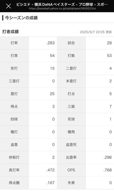 ビシエドは7月末に登録され43試合で81打数21安打の打率2割5分9厘、2本塁打、6打点。9月30日のヤクルト戦に投前安打を放ち一塁へ走る際に左太ももを痛め、最終盤で離脱。「楽しみにしている」というクライマックスシリーズ(CS)初出場はならなかった。ビシエドは2023年に国内FA権を取得しており、外国人枠を外れてプレーできる。今年9月28日の広島戦(マツダ)で日本野球機構(NPB)1000出場を達成している。