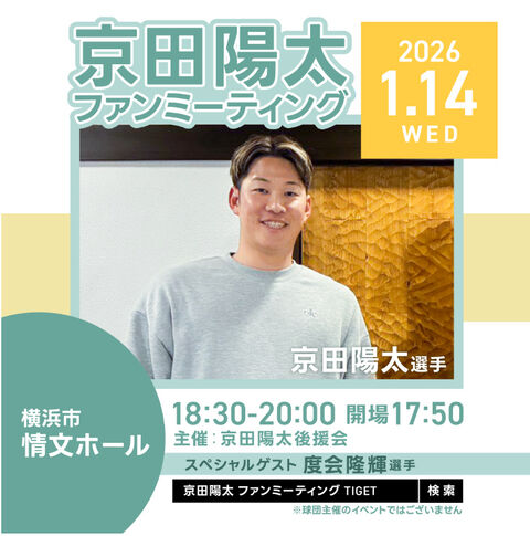 DeNA京田陽太 ファンミーティング開催決定!スペシャルゲストに度会隆輝が登場 後援会主催 2025年12月21日 カテゴリ:横浜DeNAベイスターズ京田陽太 596: 名無しさん 25/12/19(金) 22:31:47 ID:ms.xk.L40 (*^◯^*)バトルミーティング 続きを読む タグ :#京田陽太#ファンミーティング#横浜DeNAベイスターズ
