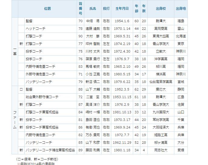 >両コーチともに来季は球団スタッフの打診を受けている。